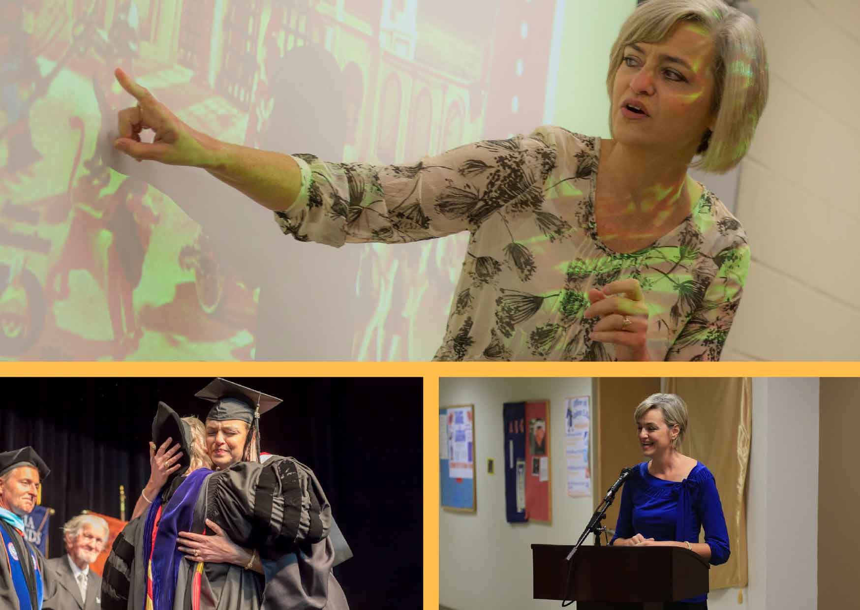 In 1999, she began teaching again while serving as Director of Extended Learning, and then in 2001, she assumed a full-time Instructional Technology and English position. She earned tenure track status in 2004, was awarded tenure in 2008 and attained Professor rank in 2016.
