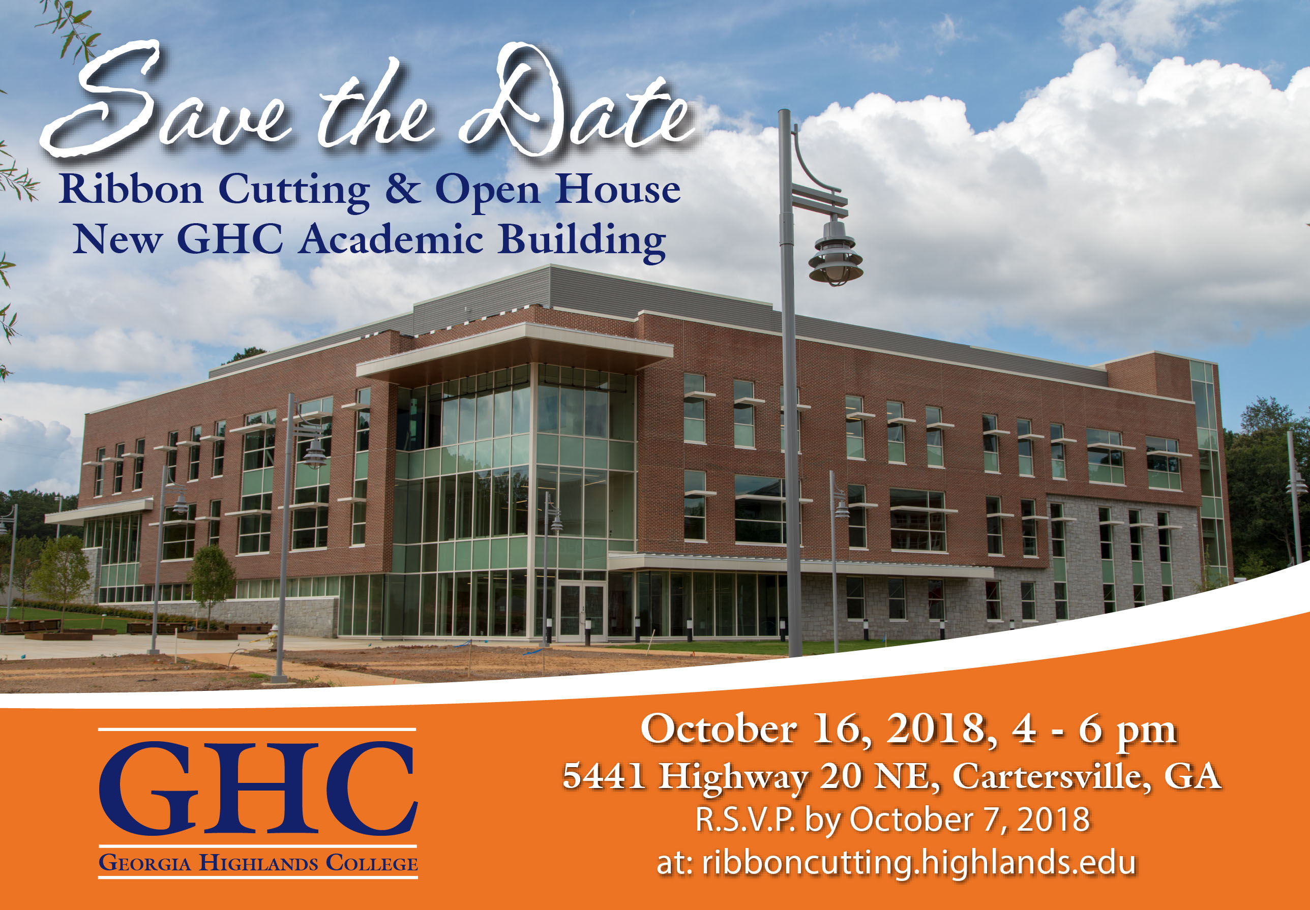 Georgia Highlands College will be opening its new academic building at the Cartersville location in October during a Ribbon Cutting and Open House event.
